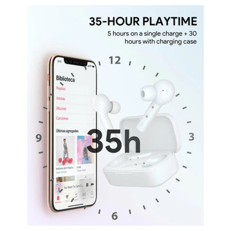 Enjoy up to 5 hours of high-quality sound output on a single charge. The included charging case provides you with an additional 6 chargers, allowing up to 35 hours of total playtime.