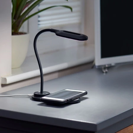 Not only does this white, modern lamp look amazing, it also features a fast-charging 10W Qi-compatible wireless charger. The wireless charger seamlessly fits in with the lamp, as well as functioning effectively for your Qi-compatible device.