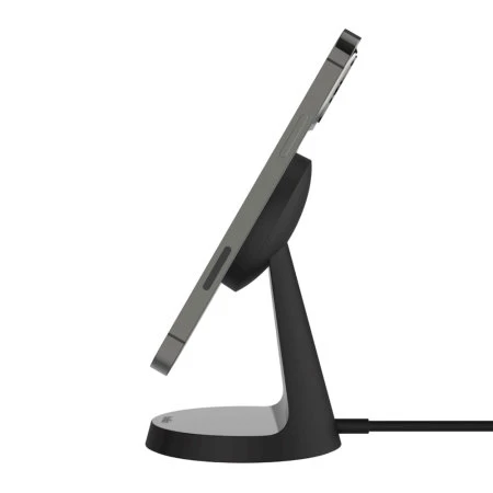 The Belkin 20W Magnetic MagSafe Wireless Charger Stand Uses the MagSafe feature of your compatible iPhone (12 and 13 series onwards) and lets you snap it magnetically into perfect alignment with one hand, allowing for fast, wireless charging efficiency up to 7.5W, and keeps your phone from disconnecting from power if bumped.