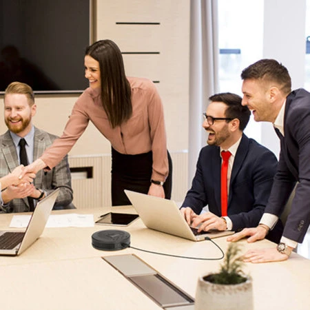 BY-BMM400 is an omnidirectional conference microphone with a speaker, ideal for video-shooting and phone call conferences. It features all necessary cables (3.5mm TRRS connect to cable/ the Type-C connect to cable/ the Type-C to USB A connect cable, that makes it possible to work with smartphones, tablets, PC and MP3 players,s and more.