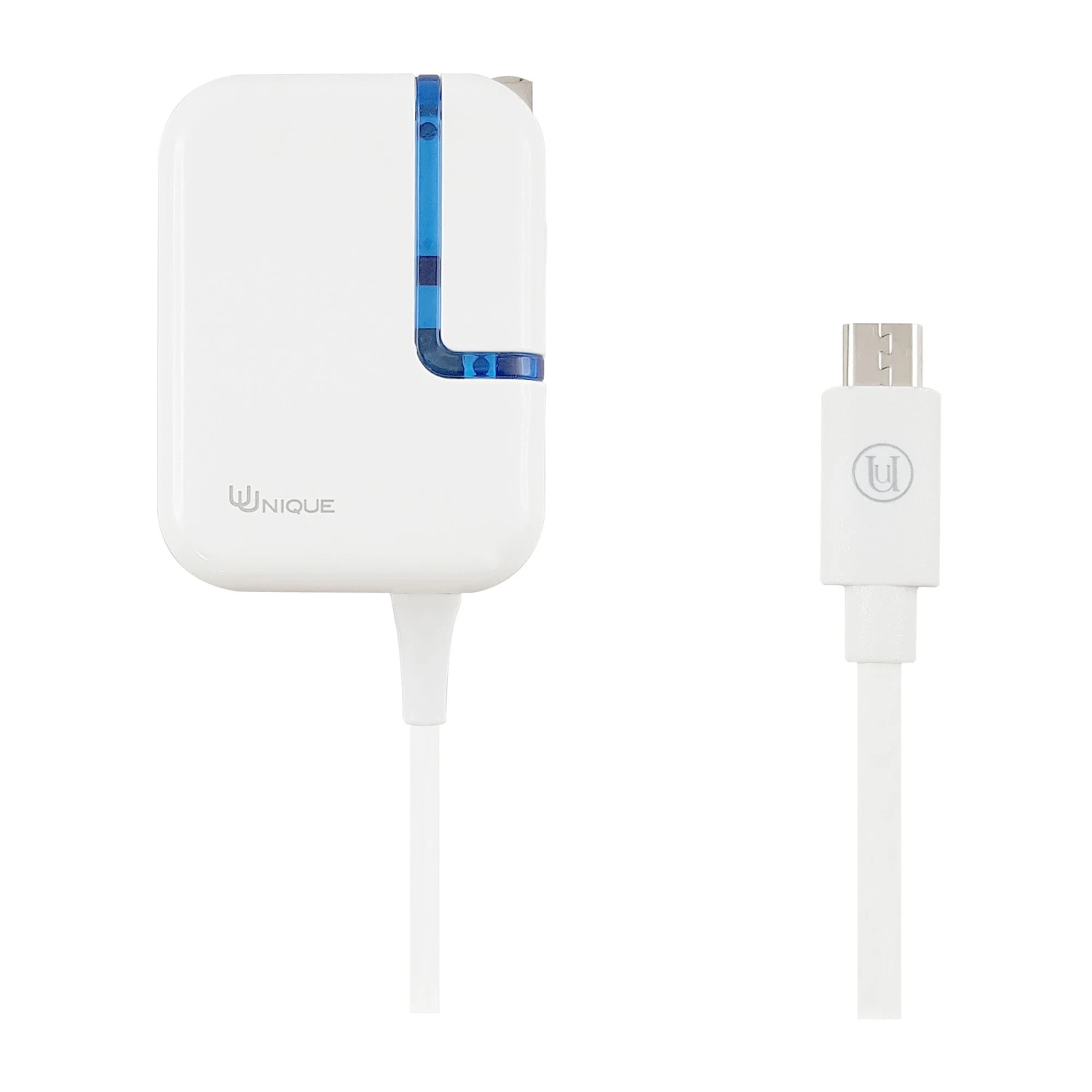 Keep your Micro USB devices charged with the Uunique White 2.4A Micro USB Wall Charger w/ fixed cable. This Uunique Wall Charger features a built in 2.4A Micro USB cable to deliver the most optimal charge possible with an output of up to 2.4 Amps.