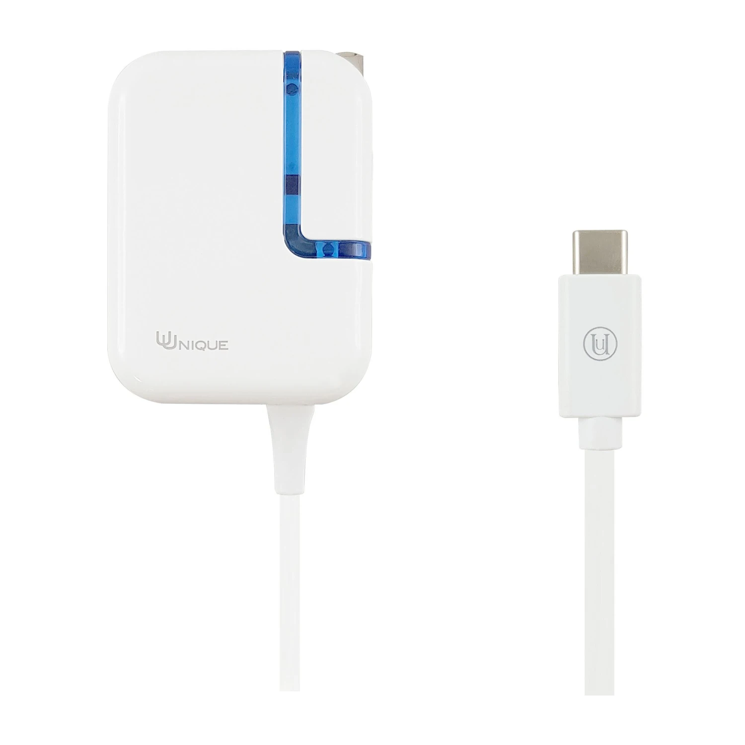 Keep your USB Type-C compatible devices charged with the Uunique White 3A USB C Wall Charger. With USB-C charge technology, your smart phone, tablet, or laptop can safely and quickly get charged, so you can spend less time connected to an outlet and more time living. The USB-C Wall Charger will charge with up to a 3 Amp charging rate.