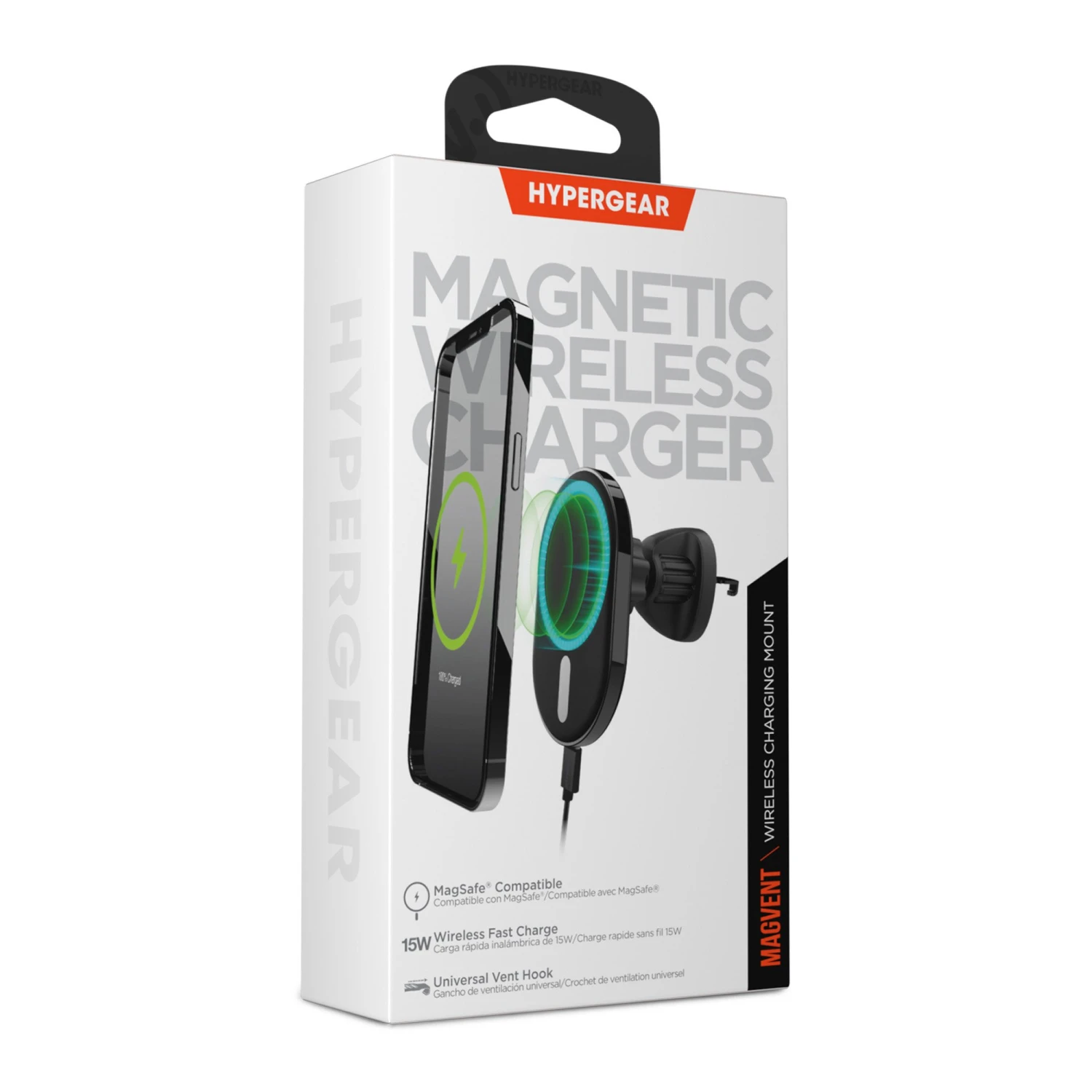 Simply hold your MagSafe iPhone or MagSafe case near the base of the mount and the powerful magnetic force instantly grasps on. Instantly, your phone starts fast charging on contact! Enhanced with 3X the power of standard chargers at 15W, the HyperGear MagVent can save you up to 2 hours of charging time on the road!