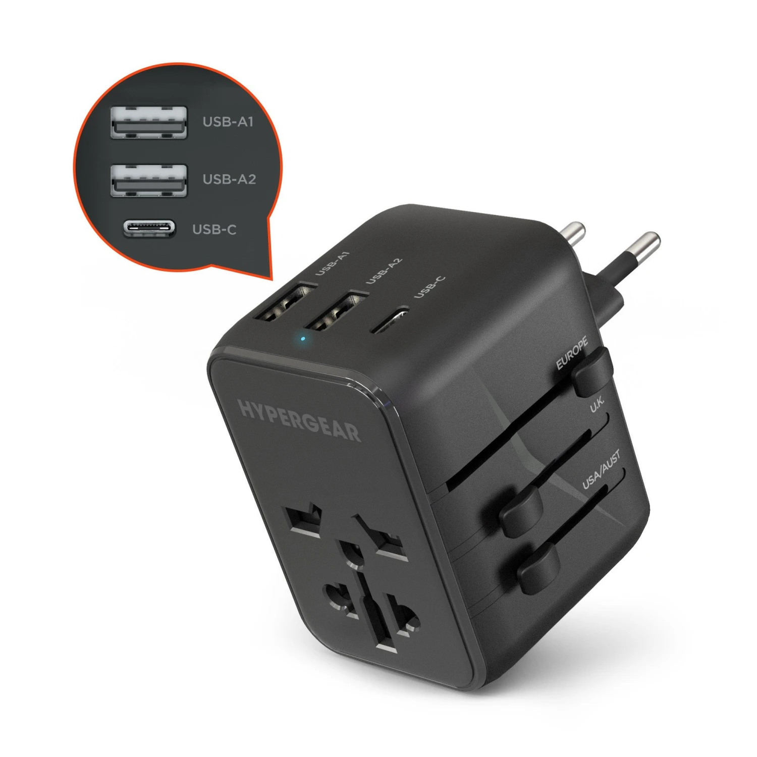 Stay connected wherever you go with the HyperGear 15W WorldCharge Universal Travel Adapter designed to work in over 150+ countries, territories, and island regions. The Universal Travel Adapter combines a 15W USB-C fast charge port, two high-speed USB-A ports, and a powerfully universal AC socket into one compact, lightweight, and easily packable package.