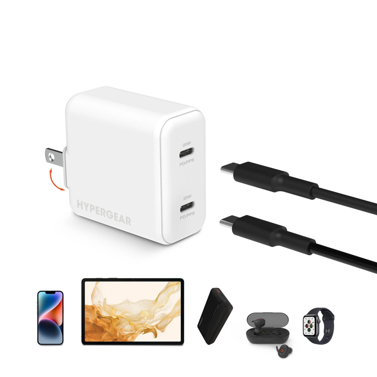 Featuring cutting-edge USB-C PD and PPS charging technologies, the HyperGear SpeedBoost Dual 20W USB-C PD Wall Charger provides guaranteed fast charging for two phones, two tablets, or two accessories at the same time. Thanks to the two independent ports, your phone will charge from 0 to 50% in 30 minutes no matter what else you’re charging, even another phone. This 2-in-1 charger was designed with dependability in mind – it’s universally compatible and compact enough to fit into any outlet and any bag, so you can have reliably fast power for your devices anywhere you need them.