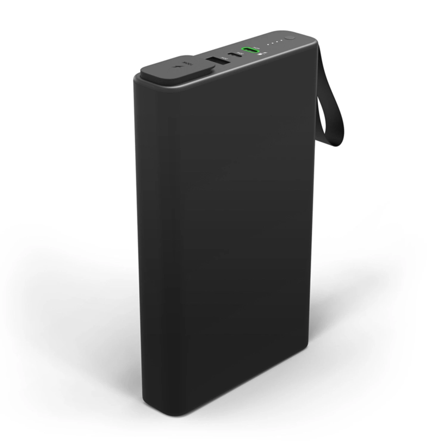The Mophie 27,000 mAh powerstation pro AC offers high capacity charging with fast power delivery. In addition to a 27,000mAh internal battery, you can access up to 130W of combined power from four ports – AC, USB-C PD, USB-C, and USB-A. Charge multiple devices at once like your laptop, phone, camera batteries, or electrical devices like a fan. The USB-C PD port provides fast-charging power. Tuck the powerstation pro AC in your bag, or use the carry strap, so you’ve got loads of back-up power wherever you go.