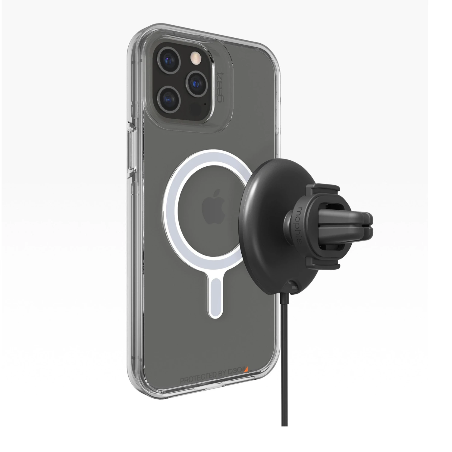 Charge while you drive! The mophie snap+ wireless charging vent mount delivers up to 15W* of power to your phone while keeping it at the perfect viewing angle. The magnetic array ensures accurate placement so charging begins on contact. The strong magnets secure your phone in place, making it easy to use for GPS navigation or hands‑free calling. The charging puck is also removable for added versatility. The snap+ wireless charging vent mount is also compatible with MagSafe-capable iPhone models and any Qi-enabled smartphone.