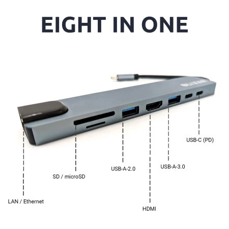 Never be caught short with the Olixar 8-in-1 USB-C Multi-function Hub. Charge smartphones, smartwatches or iPads, transfer data and broadcast 4K movies using the HDMI port – 1 device has endless uses. The Olixar 8-in-1 hub is as versatile as they come, featuring 8 ports including 2 USB-C ports, 2 USB-A ports, 1 4K HDMI port, 1 SD fast-card reader, 1 Micro-SD fast card reader and 1 ethernet port.