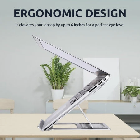 The slim compact stand from Olixar elevates your laptop by up to 6 inches for a perfect eye level and prevents you from hunching over your screen, which reduces neck and shoulder pain. Moreover, no tools are needed for adjustment, just a push or a pull action depending on your need. Also, it is foldable for easy storage and portability.