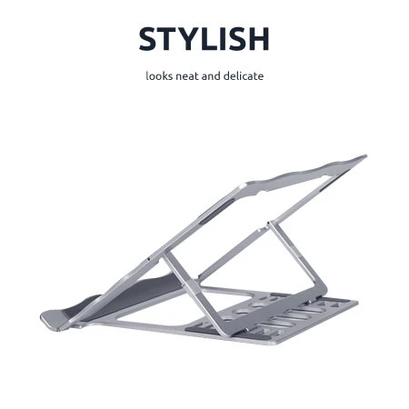 The specially processed aluminium alloy material looks neat and delicate, easy to clean, rust-proof and scratch-proof. The uniquely designed storage groove in the bottom panel makes a holding space for the accessories such as cell phone, USB storage, iPad pen, wireless mouse etc. or stationery such as pen, eraser, stapler or notepad.