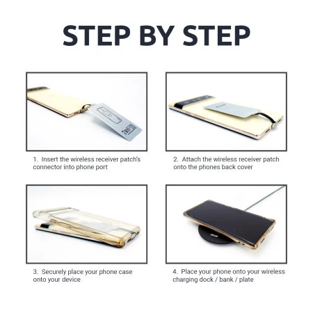 Step 1: Insert the wireless receiver patch’s connector into the phone’s charging port.