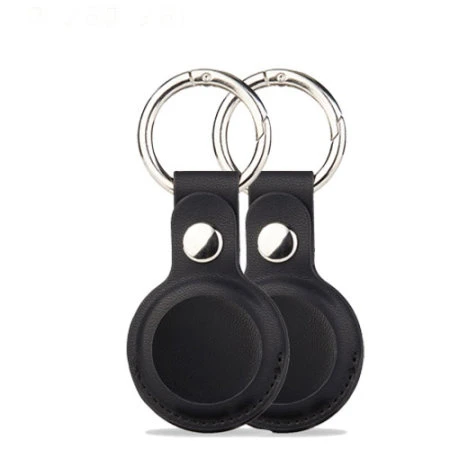 - 2 x Olixar Genuine Leather Apple AirTags Keyring Case With Solid Back