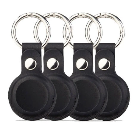 - 4 x Olixar Genuine Leather Apple AirTags Keyring Case With Solid Back