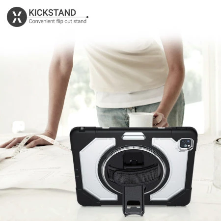 Complementing the protective properties of the polycarbonate shell is a textured finish, which helps to improve grip when holding your tablet. What’s more, the stretch handle at the back adds more functionality which makes holding your iPad Pro more comfortable in the palm of your hand.