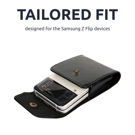 Manufactured from the softest PU leather, this Olixar belt case also features a press stud which adds a touch of real quality to your already stylish Z Flip4. The case features a single opening at the top to make it easy to insert your phone and small cut-outs on the side of the pouch for your controls and to easily remove your device from the case.