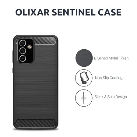 Protect your phone from scratches, knocks and drops with the Olixar Sentinel for the Samsung Galaxy M23 5G. Featuring a rugged, flexible, textured TPU body that is tough enough to protect your device, without adding unnecessary bulk. The flexible and robust TPU core features shock absorbing strength allied with a stunning carbon fibre and brushed metal style finish on the back. The inner patterns also help deflect shock force and aid heat dissipation.