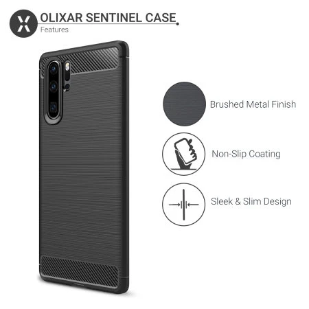 Protect your phone from scratches, knocks and drops with the Olixar Sentinel for the Huawei P30 Pro. Featuring a rugged, flexible, textured TPU body and that is tough enough to protect your device, without adding unnecessary bulk. The flexible and robust TPU core features shock absorbing strength allied with a stunning carbon-fibre and brushed metal style finish on the back. The inner patterns also help deflect shock force and aid heat dissipation.
