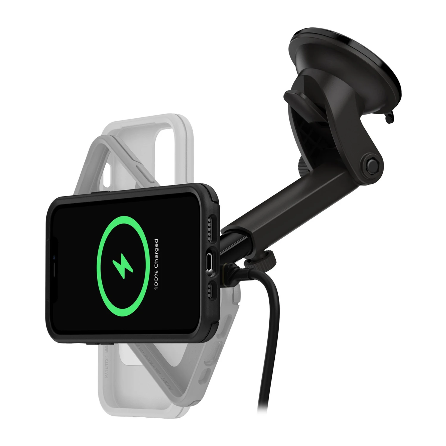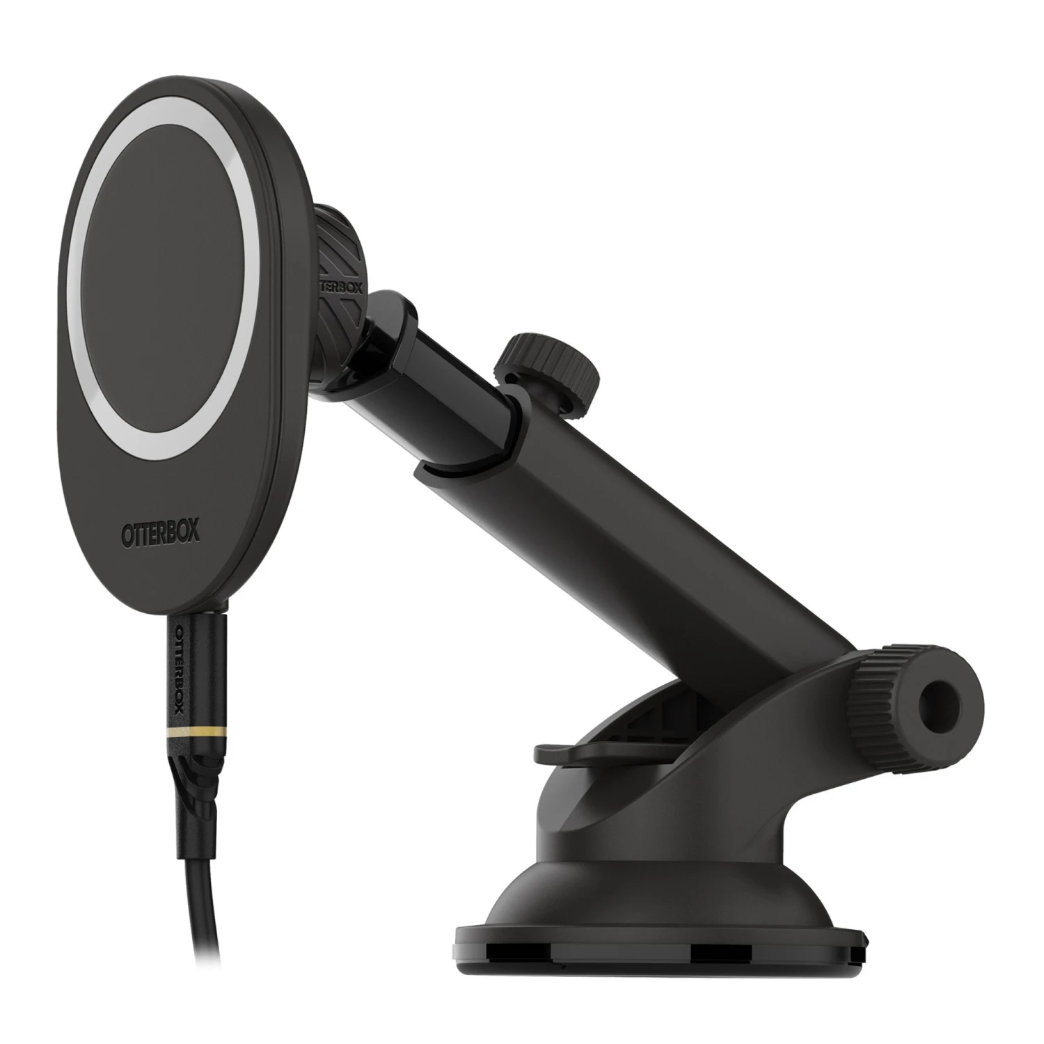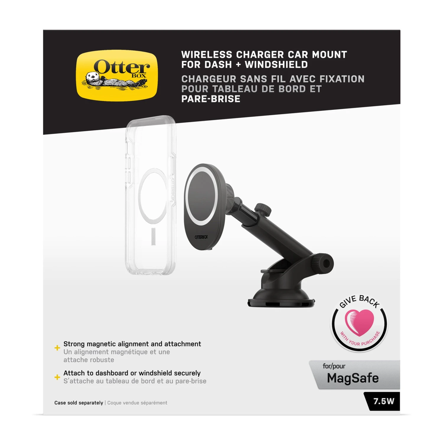 Designed for simplicity and convenience, OtterBox’s Wireless Charger Car Dashboard Mount for MagSafe compatible iPhones on the road. Simply attach the mount to your dash or windshield, connect it to the cable and car charger and you’re ready to go far and wide.