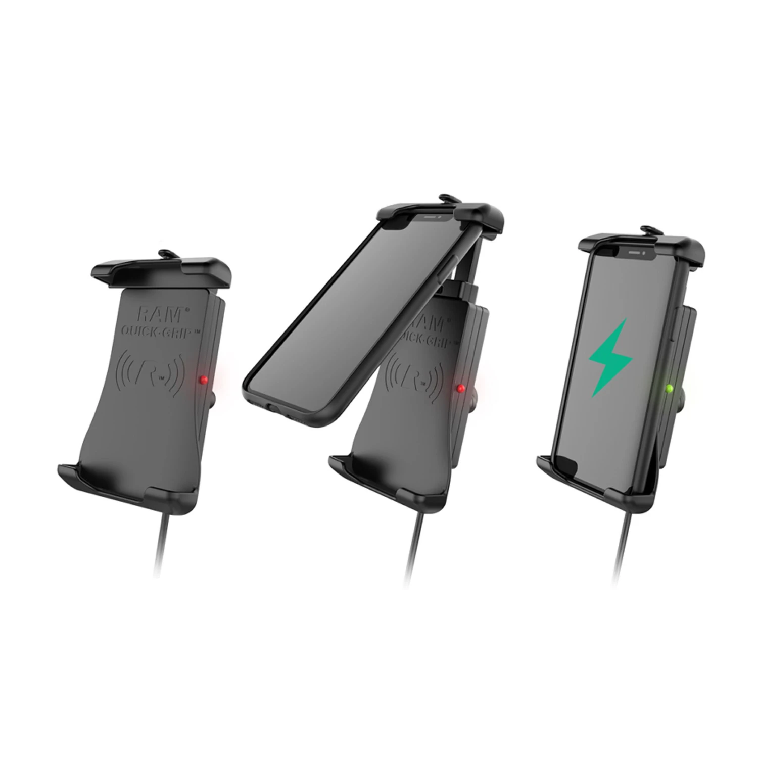 As part of the spring-loaded RAM® Quick-Grip™ family, this cradle allows for single-handed placement and removal of the phone while taking advantage of Qi wireless phone charging. Both the top and bottom cups feature rubber to hold the phone firmly in place.