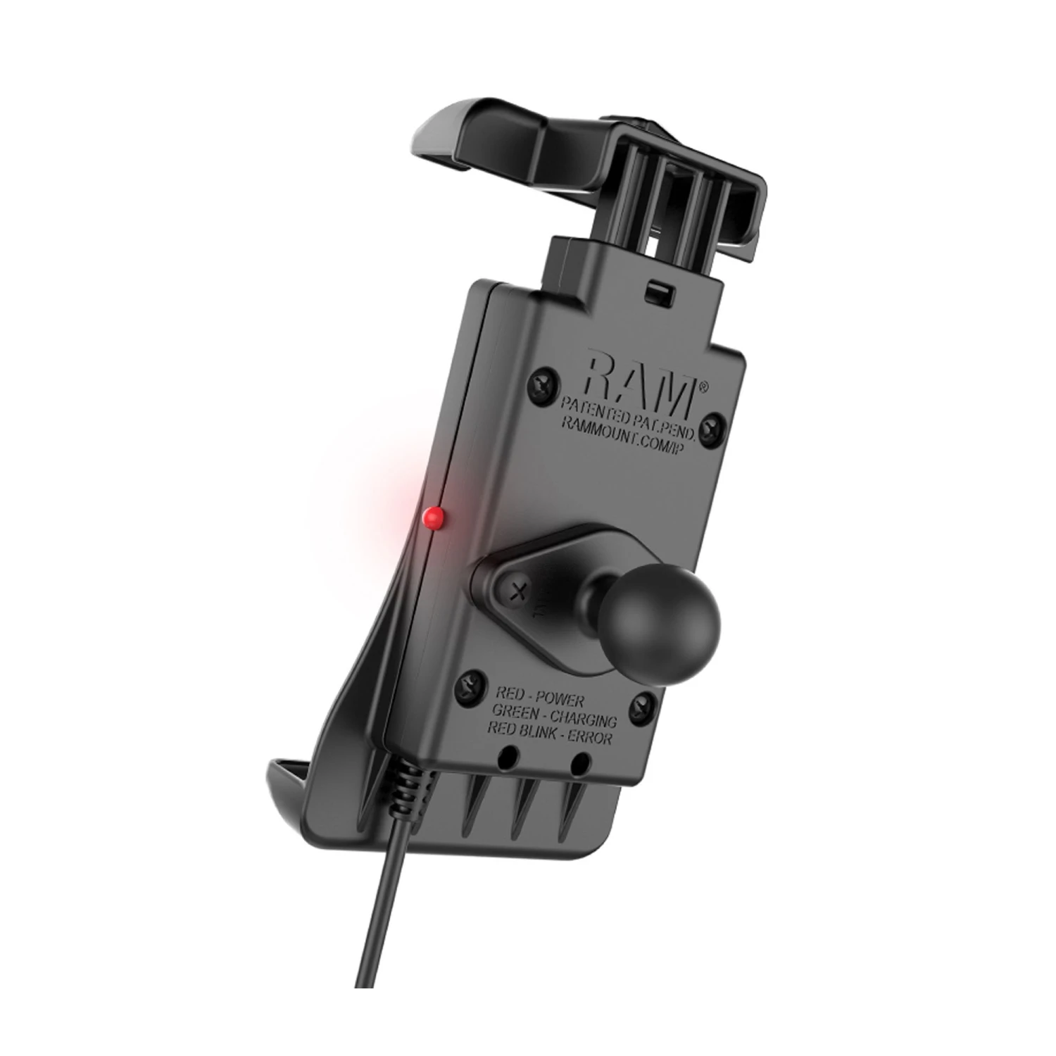 For added security and peace of mind, a device tether is included that’s recommended for outdoor applications. This RAM® Quick-Grip™ Wireless kit for motorcycles includes a B size diamond base featuring a 1” rubber ball – perfect for attaching to your choice of B size RAM® double socket arm.