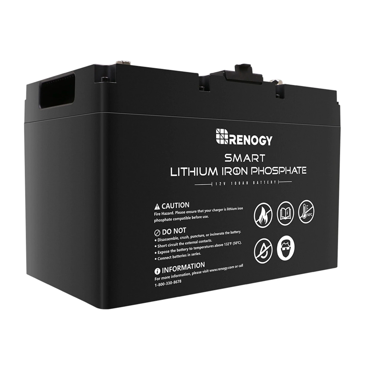 The integrated smart battery management system (BMS) not only protects this 12V 100Ah LiFePO4 battery from various abnormal conditions but monitors and manages the charging/discharging process. The Renogy state-of-the-art battery cells ensure a long cycle life and exceptional discharge performance. If you’re searching for a deep cycle battery for caravan, cabin, or marine use, then this lightweight, auto-balanced, ultra-safe, long-cycle-life lithium-ion battery is the perfect plug-and-play solution for you!