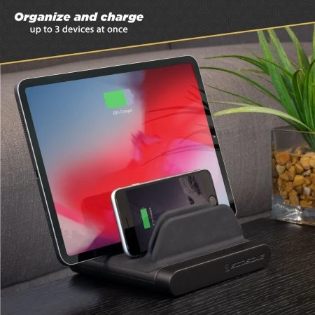 As this vertical charging station comes with 2 USB-A ports & 1 USB-C port, you can fit 3 separate devices on it. This saves these devices taking up room on your desk or on your bedside table. You can instead have the 3 devices placed in the station, charging quickly and safely until you need them again. This is also great for helping remember where you’ve put your device as you can feel secure knowing that, due to the non-slip design, your devices will be safe and sound in the Scosche BaseLynx charging station until you need them again.