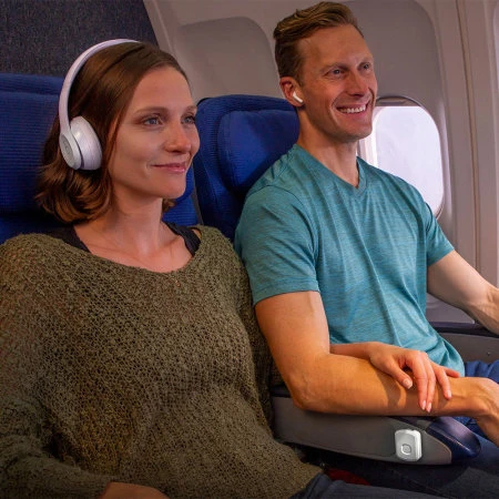 The FlyTunes has been engineered with a built-in rechargeable battery lasts up to 8 hours on a full charge, ensuring you are connected on long flights, travel journeys and hardcore workouts.
