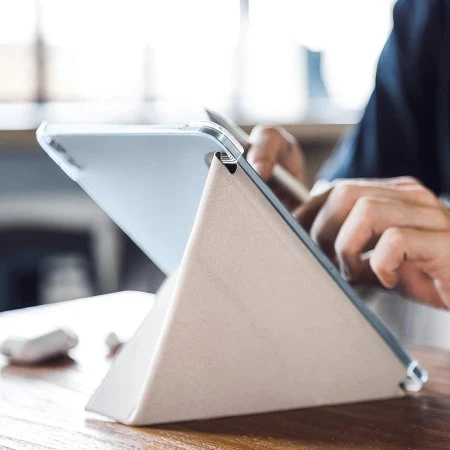 This case features an extremely unique design, as it is made in the style of ‘Origami’. This means that it can fold in 4 separate ways, providing you with 4 different angles and ways to use your iPad! You can use the stand to hold your iPad up in portrait to make taking notes easy, or you can use it in landscape to watch your favourite movie at the perfect angle. Keep your hands free to eat snacks or to write notes with this super useful, multipurpose case from SwitchEasy.
